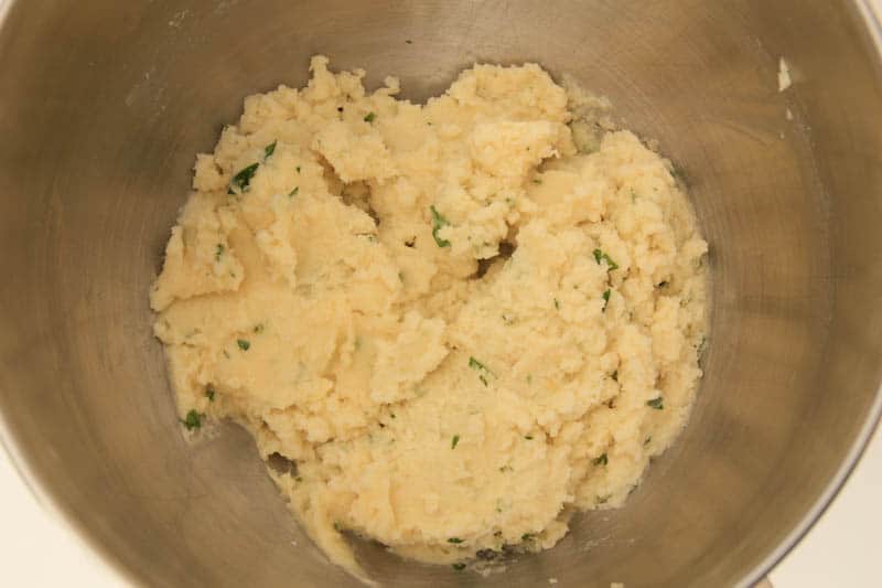 1. Mix together potatoes, cheese, egg, onion, basil and flour.
